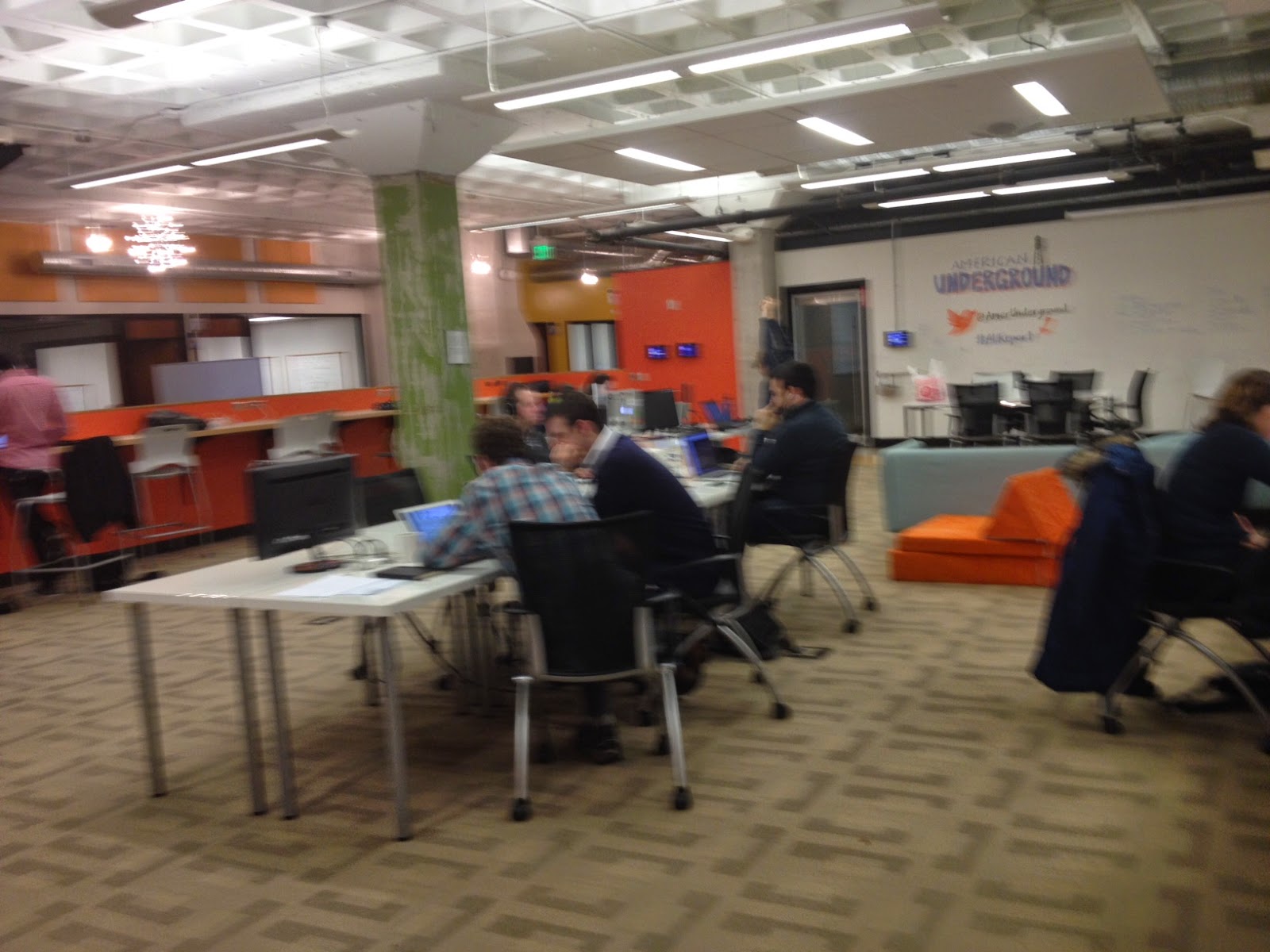 Today is my first day at The American Underground at Main St. (AU@Main) in the “bullpen” coworking area: